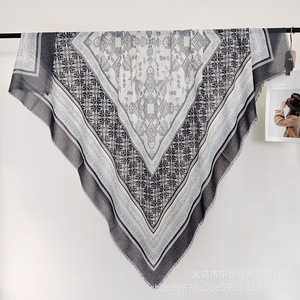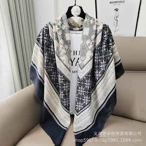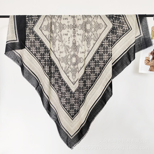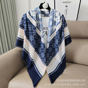 越境で人気の秋冬用暖かいプリント柄130cm大判スカーフ、綿麻のような肌触り、旅行やエアコン付きの部屋での使用に最適な女性用ショール/スカーフ