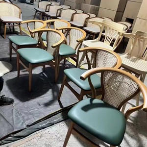 ソフトバッグのベランダのレジャーチェアの純粋な手編みの手すりの藤の椅子の北欧の復古の木の藤は食事の椅子の家庭用レストランを編みます。