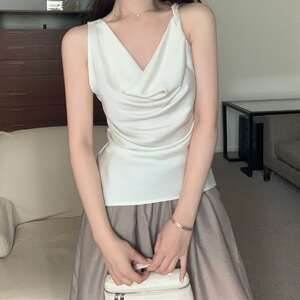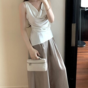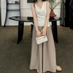 浮遊甘い気質スイングカラーノースリーブベストトップ2025夏ハイウエストワイドレッグカジュアルパンツ2点セット