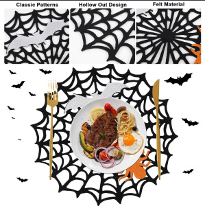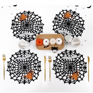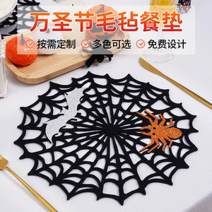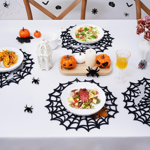 越境ハロウィーンフェルト食事マット蜘蛛の巣断熱マット乾燥マット祝日パーティーテーブル円形装飾食事マット