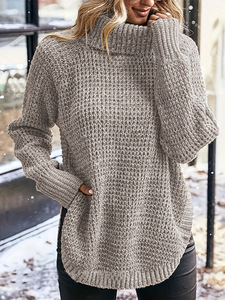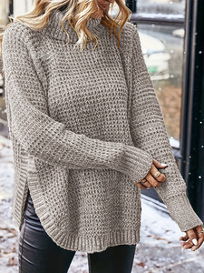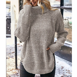 ヨーロッパとアメリカの秋と冬の外国貿易女性のセーターアマゾンクロスボーダーファッションハイラペルスリットプルオーバー長袖セーター女性のための