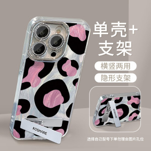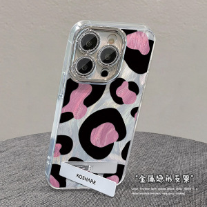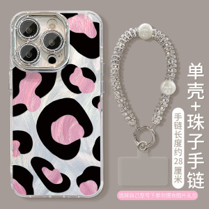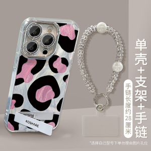Apple 15、iPhone 17 Pro Max、ピンクの豹柄スタンド付きブレスレット、13用羽根ガーゼレンズフィルム、16用に適しています。