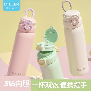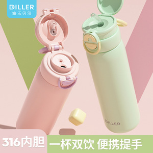 迪楽ベルはシンプルで清新な純色保温カップ316ステンレス男女学生が携帯しています。