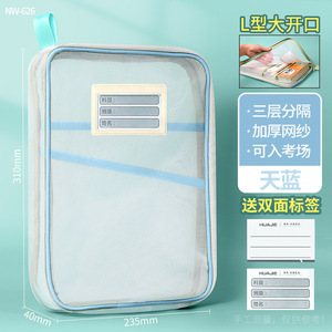 L型厚手大容量a4分類科目手提げ袋書類袋学生試巻透明ネット本収納