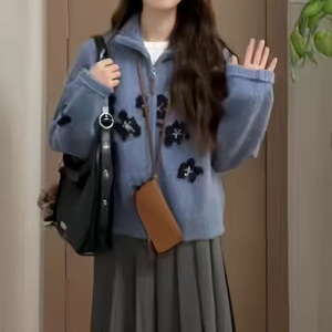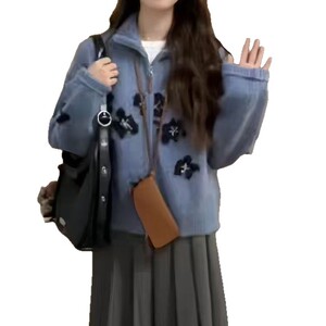 【カシミヤの世家】vネックのウールのカーディガンのコートの女性の中年のお母さんのゆったりしている大きいサイズのニットのセーターの外でセーターを掛けます。