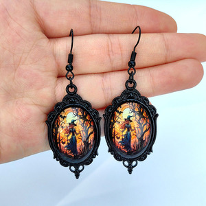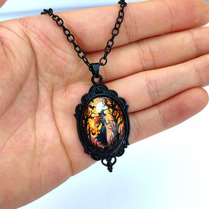 欧米の国境を越えたレトロなハロウィーン生命の木/魔女クリスタルガラス合金ペンダントイヤリングネックレスセット