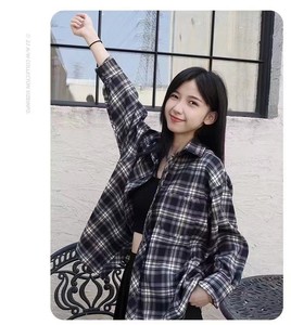 春と秋の新しい緑の格子のシャツのコートの女性の香港風の小さい大衆はカップルのシャツのins潮の学生の上着を設計します。