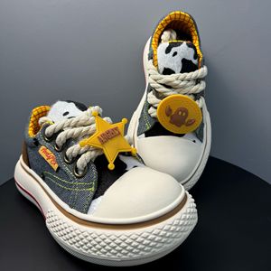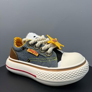 ウッディ共同ブランドデニムビッグヘッドシューズ女性のトレンディなブランド漫画カップル厚底キャンバスシューズ夏通気性カジュアルスニーカー