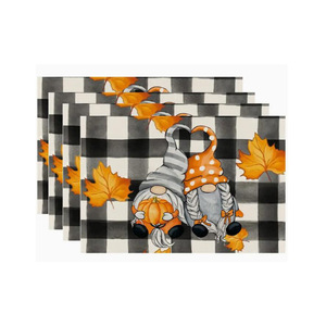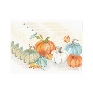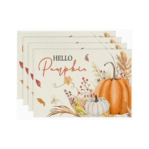 クロスボーダー新しい感謝祭秋カボチャひまわりカエデの葉シンプルで雰囲気のあるプリントリネンプレースマット防水性と断熱性