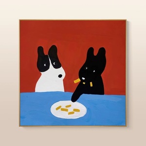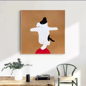 北欧モダンな正方形の漫画の子犬リビングルーム玄関絵画子供部屋の寝室の壁画レストラン吊り絵画落書き
