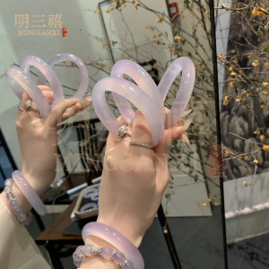 天然バイオレット玉髄ブレスレット氷種瑪瑙淡紫少女玉腕輪レイシ冷凍円条宝石サトイモ