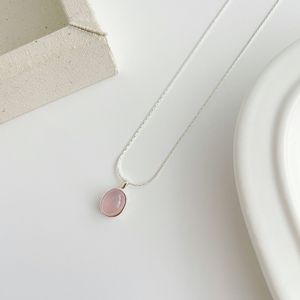 サイナ甘い気質S925純銀ピンク玉髄ネックレス女性独特デザイン楕円天然石蛇骨鎖
