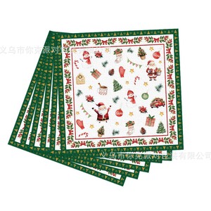 水彩クリスマスパーティー紙皿クリスマスツリーサンタクロース使い捨て紙コップティッシュテーブルクロスパーティー皿