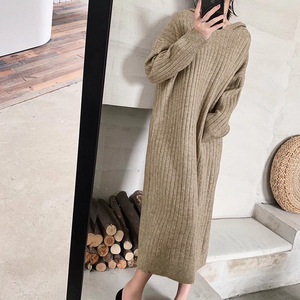 2025秋冬新作ニットワンピース レディース フード付き 無地 ミドル丈 膝下丈 インナー着痩せ効果あり セーターワンピース