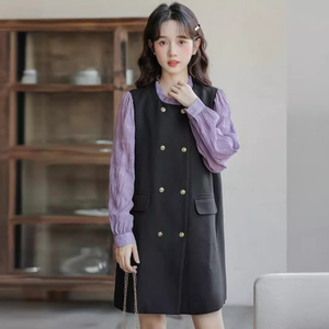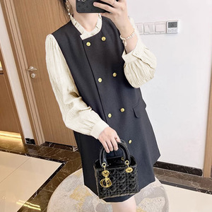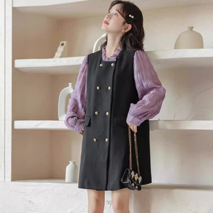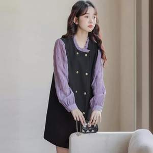 フランス式の偽の2つは黒いワンピースの女性をつなぎ合わせます。