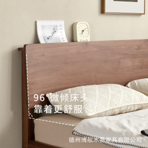 北米産ブラックウォールナットベッドシンプルダブルベッド 1.8m マスターベッドルームウェディングベッドハイバックログクイーンベッド純無垢材