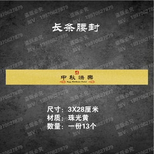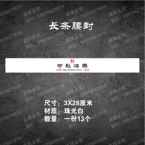 中秋のシールのウエストシールに長いシールを貼って、中秋の楽しいシールのロゴをシールします。