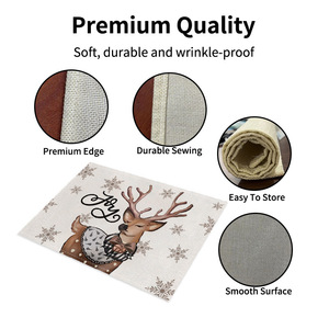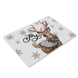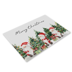 アマゾンの爆発的なクリスマスの食事マットレストランの雰囲気はテーブルマットの亜麻のプリントの断熱マットの洋食マットの卸売りを配置します。