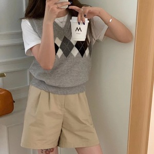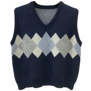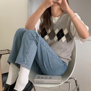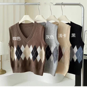秋冬学院の風は色の菱格vネックにぶつかって、ニットのベストを重ねて着ます。