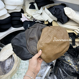 JMX水洗い皮前入帽子供ネットレッドins潮秋冬新作韓国版レトロ古い銭風蓬蕾帽卸売り