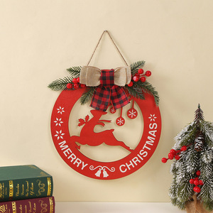 クリスマスフロントドア木製タグガーランドメリークリスマスサイン装飾バッファローチェック柄吊り下げドアプレート