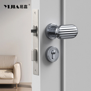 寝室のドアロックはフランスのクロムメッキの明るい銀色の室内のドアの実木のドアの取っ手の通用型の磁気は静かにロックします。