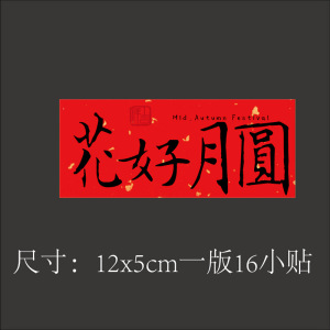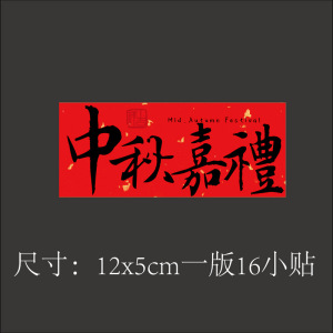 ハッピー中秋節/12x5cm/16個、金と赤のスプリンクル付き