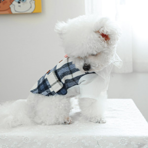 工場直送/在庫あり 新製品 ペット服 犬猫服 秋冬 暖かいブルーチェック柄タキシード