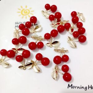 韓国版k金色葉さくらんぼペンダント合金部品diy手作り髪飾りペンダント愛ハート型キーホルダー