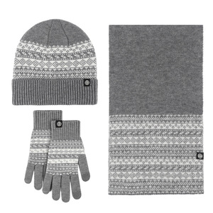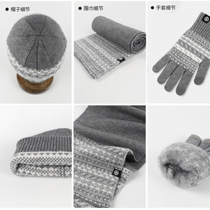 欧米の越境ニット帽子マフラー手袋3点セット冬保温セット防風ジャカードマフラー3点セット