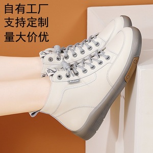 白い靴の女性2024春の新しい本革の柔らかい底の平底の運動のレジャーの板の靴の快適さは牛の筋肉の靴を手伝います。