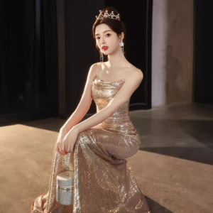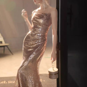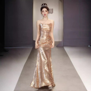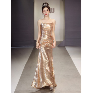 ストラップのタキシードの女性の高級感の宴会の気質の魚の尾のスカートの軽くて豪華な大衆のハイエンドの司会者の成人の贈り物の重工