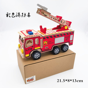 メーカー直販木製カラー消防車模型置物子供玩具車模型カラー昇降消防車卸売り