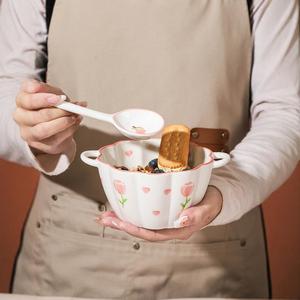 かわいい陶磁器の耳の碗の家庭用の個人の専用の新型のinsは熱いイチゴの花びらの碗の果物のサラダの碗を防ぎます。