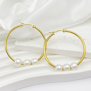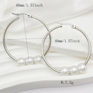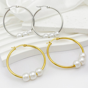 レトロ模造真珠ビーズイヤリングシンプルなステンレス気質耳輪幾何学円耳飾り