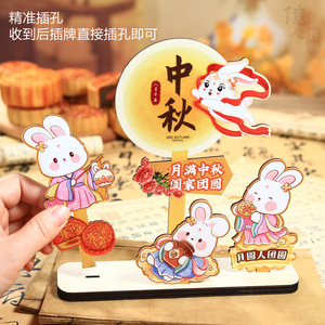 億人中秋節木製置物玄関装飾ギフト国潮文創洞板工位デスクトップ挿札DIY