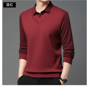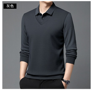 生放送で起爆した偽の長袖tシャツ男性春秋シンプルな中年のゆるいポロシャツ男性