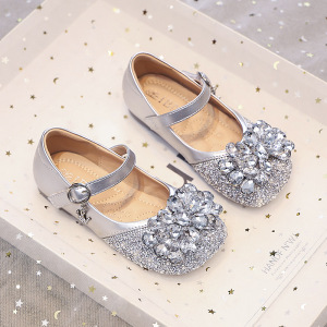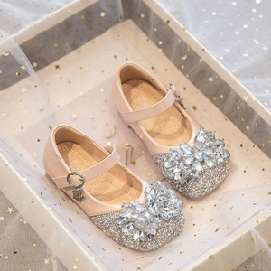 2024秋の女の子の王女の靴の洋風の赤ちゃんの水晶の靴の子供の革靴は靴の小さい女の子のドリルの靴を演出します。