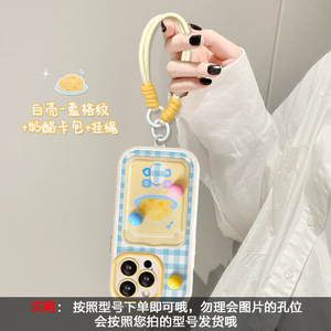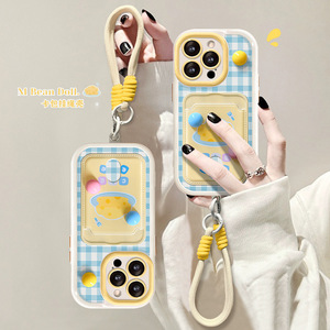 Apple 15、iPhone 16 Pro Max対応、立体的な水玉模様の格子柄カードホルダー付き、ストラップ付き、17個の精密穴あき、耐衝撃性のスマホケース