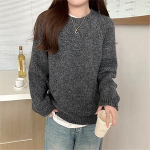 外国貿易新しいラウンドネックラグラン長袖混合色ぬいぐるみルーズプルオーバーセーター女性の大きいサイズカジュアルプルオーバー