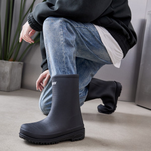 中筒雨靴新型メンズ雨靴防水滑り止め厨房釣り耐摩耗性厚い底水靴ゴム靴雨の日は柔らかい底があります。
