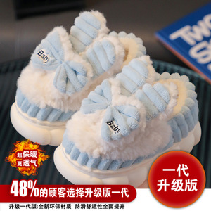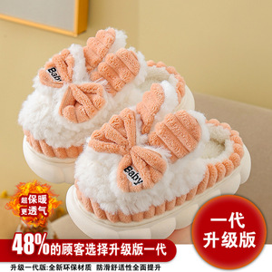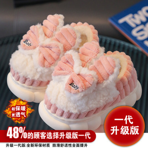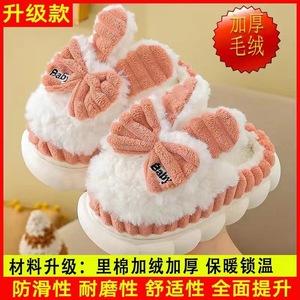 子供の冬の新型の蝶結びの綿のスリッパの女の子の冬の新型のかわいいベルベットの厚い女の子の綿の靴