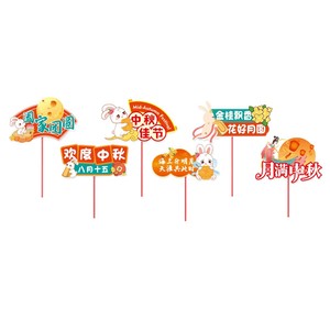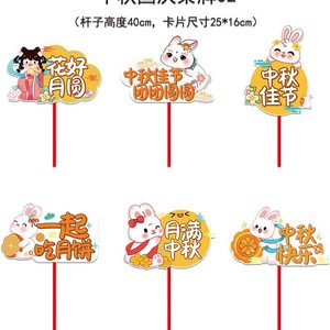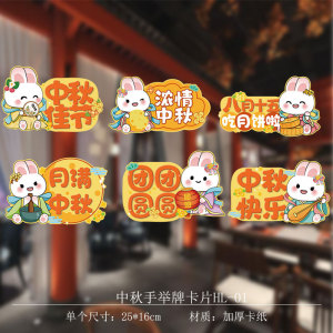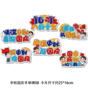 中秋節と国慶節の手持ち看板 WQ08 (カード + ポール)