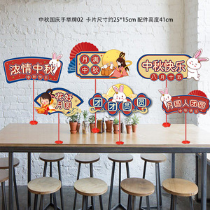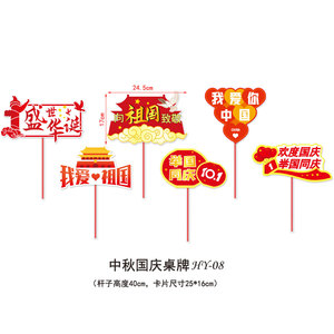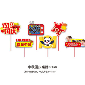 中秋節と国慶節の手持ち看板 HY13 (カード + ポール)