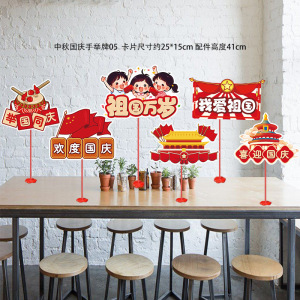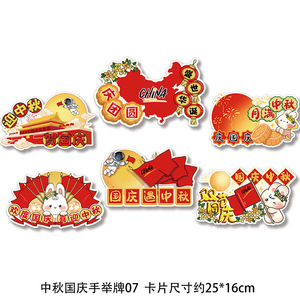 中秋節と国慶節の手持ち看板 WQ07 (カード + ポール)