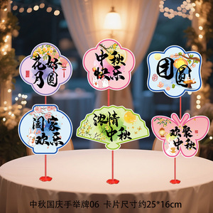 中秋節と国慶節の手持ち看板 WQ06 (カード + ポール)