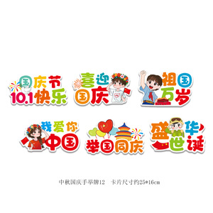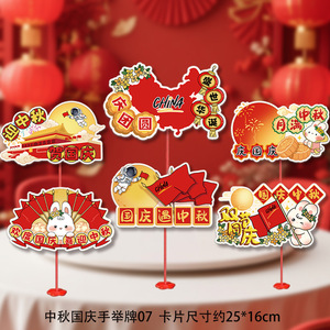 中秋節と国慶節の手持ち看板 WQ10 (カード + ポール)