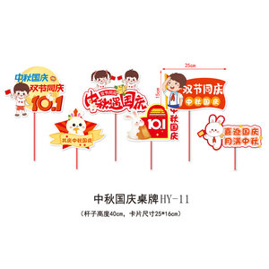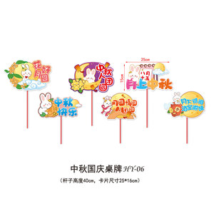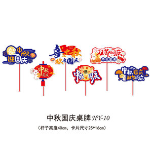 中秋節と国慶節の手持ち看板 HY12 (カード + ポール)