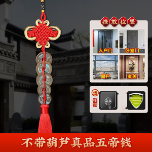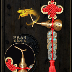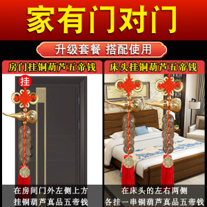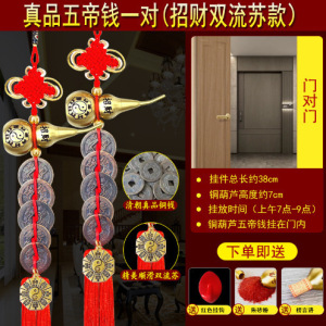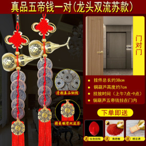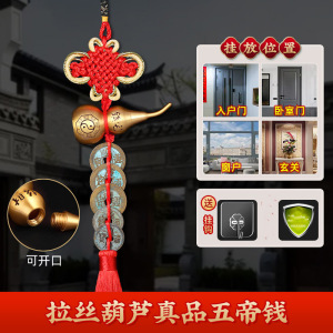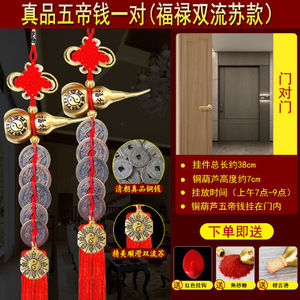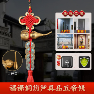 黄銅の緑のさびの五帝のお金の扉の扉のひょうたんは銅の五帝のお金を掛けて戸口に入ります。