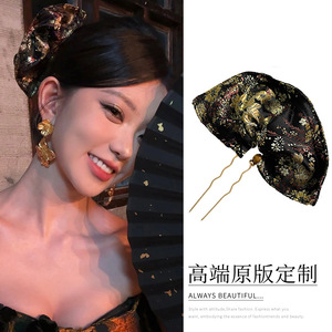新中国式扇形刺繍模様のかんざしは冷たい風で高級感があります。